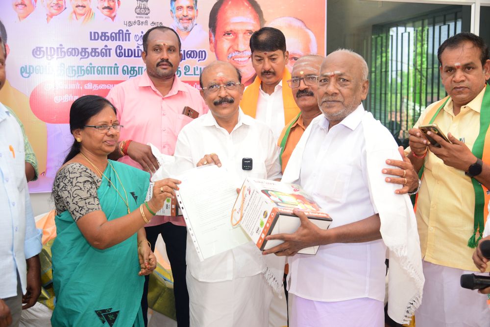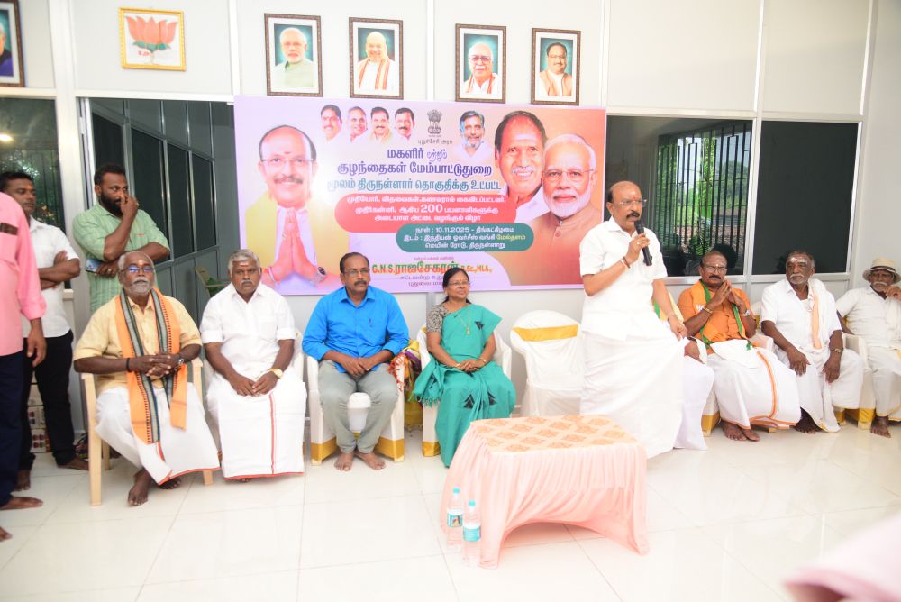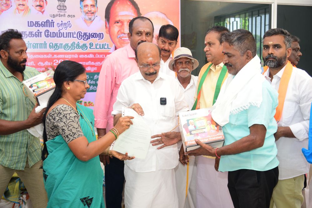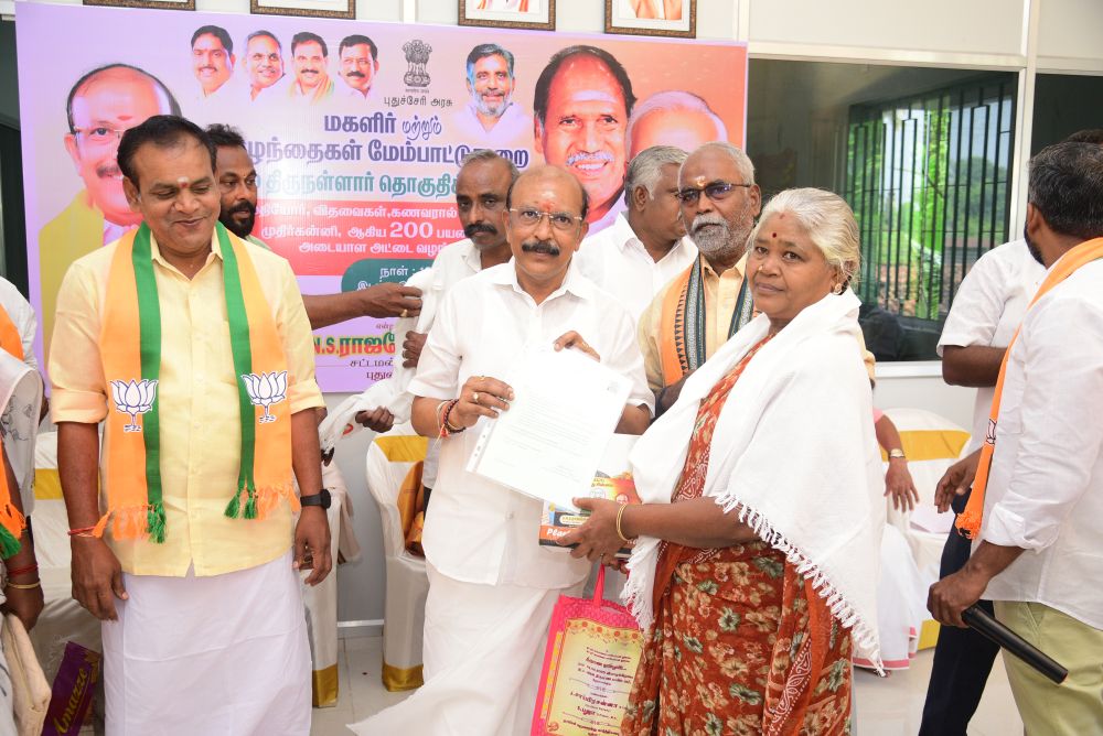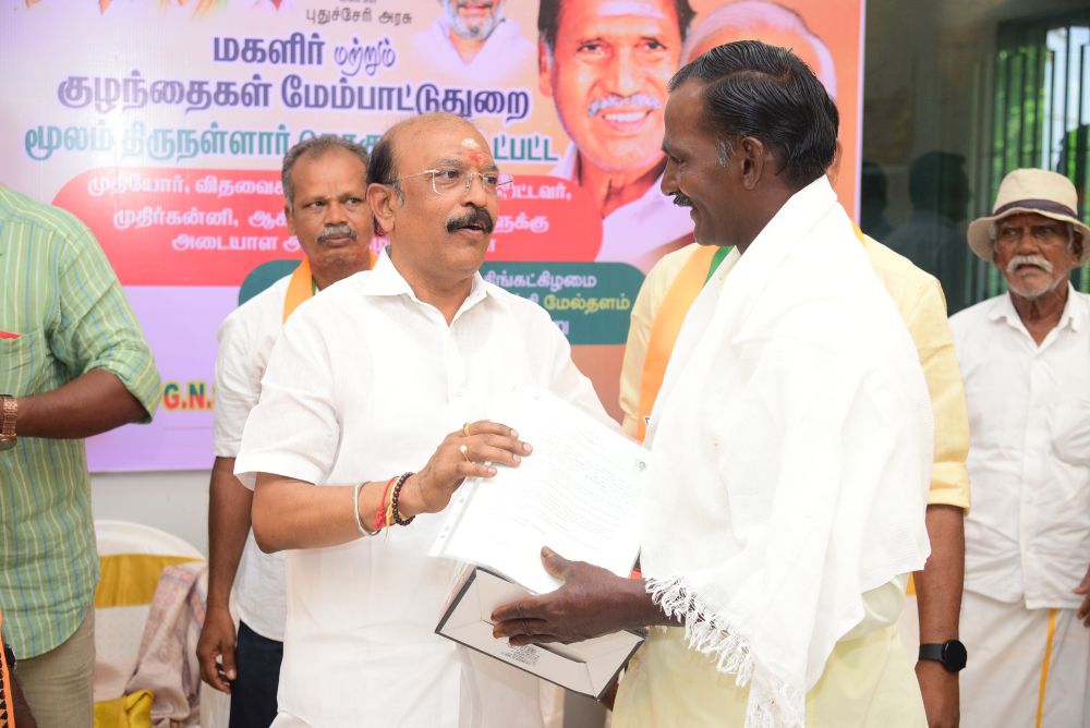 இன்று (10.11.25) புதுச்சேரி அரசு மகளிர் மற்றும் குழந்தைகள் மேம்பாட்டு துறை சார்பில், திருநள்ளாறு சட்டமன்ற தொகுதிக்கு உட்பட்ட முதியோர்கள், விதவைகள், கணவனால் கைவிடப்பட்டோர் மற்றும் முதிர்கன்னியர் ஆகிய 200 பயனாளிகளுக்கு அடையாள அட்டைகள் வழங்கும் நிகழ்ச்சி நடைபெற்றது. இந்நிகழ்வில் சட்டமன்ற உறுப்பினர் திரு. G.N.S. ராஜசேகரன் அவர்கள் தலைமையில் பயனாளிகளுக்கு அடையாள அட்டைகள் வழங்கப்பட்டன.