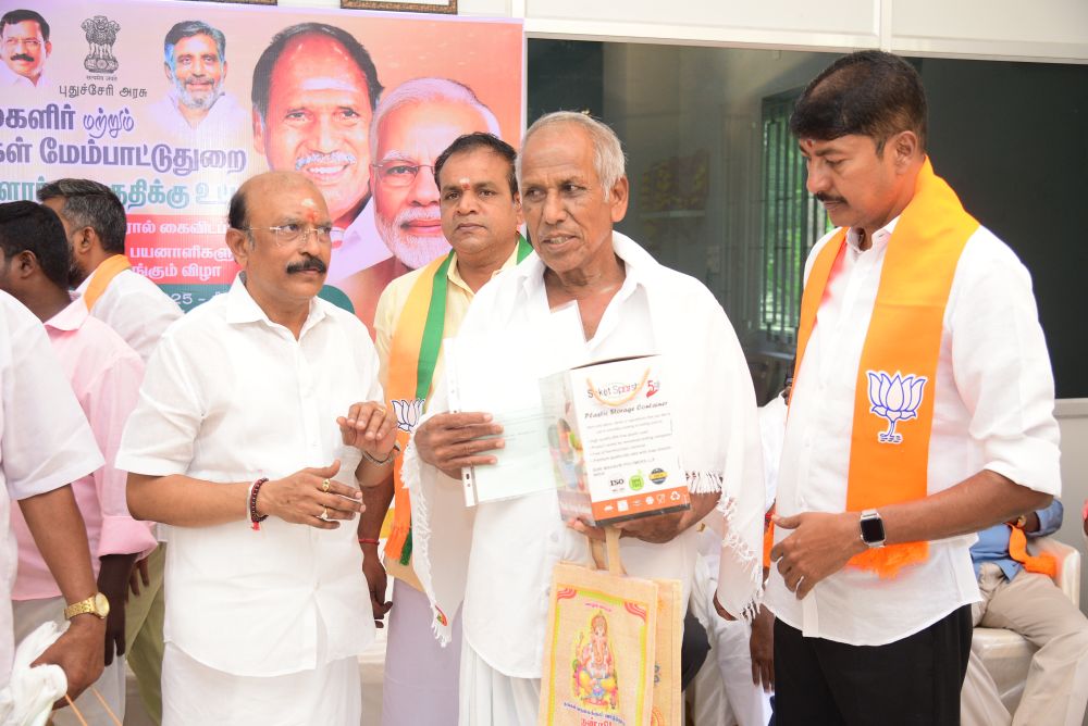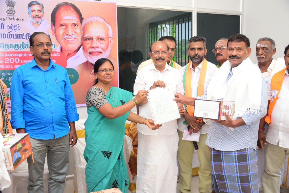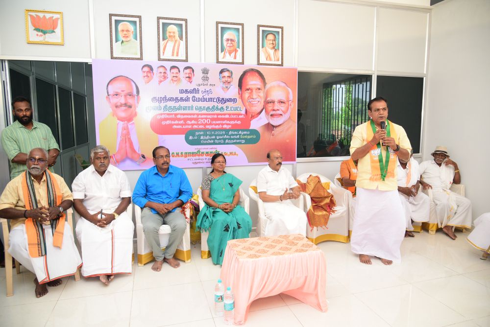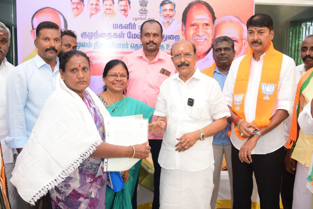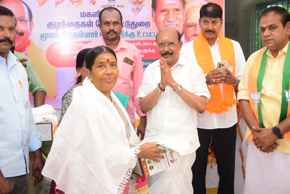 இன்று (10.11.25) புதுச்சேரி அரசு மகளிர் மற்றும் குழந்தைகள் மேம்பாட்டு துறை சார்பில், திருநள்ளாறு சட்டமன்ற தொகுதிக்கு உட்பட்ட முதியோர்கள், விதவைகள், கணவனால் கைவிடப்பட்டோர் மற்றும் முதிர்கன்னியர் ஆகிய 200 பயனாளிகளுக்கு அடையாள அட்டைகள் வழங்கும் நிகழ்ச்சி நடைபெற்றது. இந்நிகழ்வில் சட்டமன்ற உறுப்பினர் திரு. G.N.S. ராஜசேகரன் அவர்கள் தலைமையில் பயனாளிகளுக்கு அடையாள அட்டைகள் வழங்கப்பட்டன.